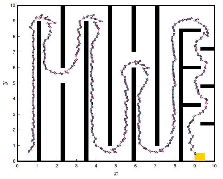 (Left) navigate to the yellow set while avoiding touching the walls; (right) stabilize the stochastically perturbed block-and-pendulum system.
